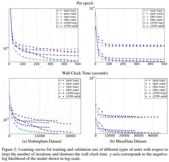 전통적인 RNN은 정보의 장기적인 보존이 어려우며, sequence가 길어질수록 gradient vanishing 문제가 자주 발생한다. 이를 보완하기 위해 gate unit을 사용한 새로운 형태의 activation function을 사용한 LSTM, GRU가 도입되었다. Bahdanau et al. [Neural Machine Translation by Jointly Learning to Align and Translate 2014] 에서 두가지 unit은 machine translatation 분야에서 상등한 성과를 거두었으나, 다른 분야에서도 그와 같은 효과를 거두는지는 아직 알려진바가 명확하지 않다. 따라서 본 논문은 신경망을 적용할 수있는 여러 분야 중 Music과 Speech signal에서도 해당 방법들이 효과적인지 검토하는 동시에 LSTM과 GRU의 empirical한 측면에서의 비교를 제안했다.
