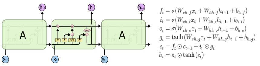 LSTM은 RNN의 hidden state에 cell-state를 추가한 구조로 총 3개의 gate를 갖고있으며 이 gate들을 통해 저장될 정보를 적절히 조절한다.