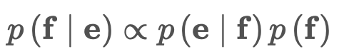 Statistical machine translation (SMT)는 대규모 데이터를 학습해 만든 통계적 모델을 사용해 번역하는 방법으로 단어들을 번역해서 조합하는 방식이며, 그간 가장 많이 사용되었던 기계 번역 방식이다. SMT system의 목표는 주어진 source sentence e가 주어졌을때 p(f | e)를 maximize하는 translation 를 찾는 것이다. p(f | e)는 p(e | f)p(f) 비례관계를 가지므로 다음과 같이 나타낼 수 있다.