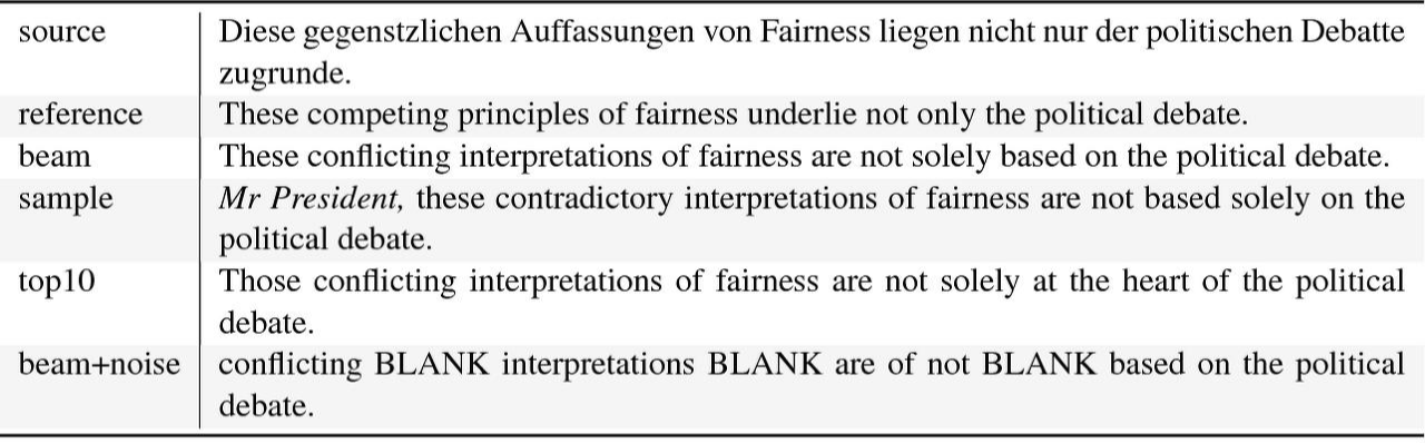 Beam + Noise: Beam Search로 생성된 결과에 Noise를 추가한 형태로, 단어를 10%의 확률로 지우고, 10%의 확률로 filler token 인 BLANK로 치환한다.