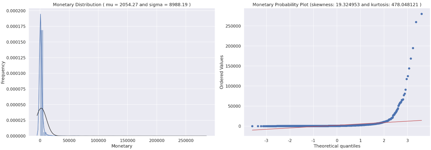 - 전반적으로 Recency와 Frequency는 Monetary와 pefectly correlate 하고 있다.