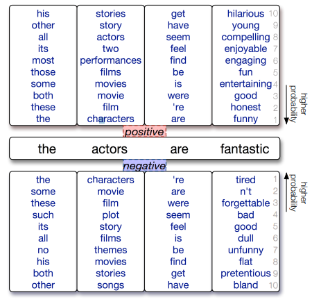 1. 긍정적인 label의 데이터에서는 "funny", "honest", "good", "entertaining"과 같은 긍정적인 단어들이, 부정적인 label의 데이터에는 "tired", "forgettable", "bad", "dull"과 같이 부정적인 단어들이 나타난다.