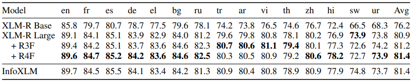해당 task에서는 GLUE dataset에 대해 RoBERTa 모델을 fine-tuning했다. 10번의 random seed를 통해 시간및 성능의 분포를 비교했다. SMART 방법돠 제안한 방법은 월등히 짧은 walltime을 가지며 성능의 median, max 값 모두 높은 모습을 보여준다. 마찬가지로 아래와같이 XNLI task에서도 sota에 준하는 성능을 보여준다.